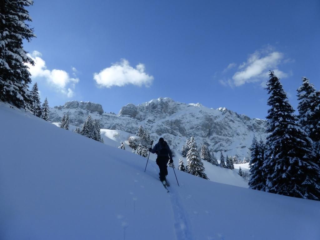 La descente n'a rien de majeure, merite * pour la partie haute avec essentiellement des traversées et peu de zones pour faire du bon ski. Le bas (a comprendre en dessous du teleski de Fronalp) est beaucoup mieux avec de belles pentes bien large dans les sapins comme j'aime bien (merite ***).