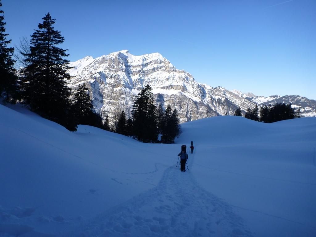 Accès: Winterthur -> Rapperswil -> Glarus -> Ennenda -> Ennetberge -> se garer au point P.937, pour les années correctes ou il y a de la neige